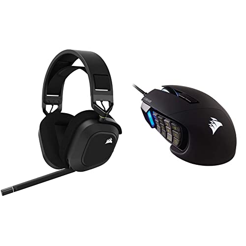 CORSAIR HS80 RGB Casque de jeu sans fil Premium avec audio spatial – Fonctionne avec Mac, PC, PS5, PS4 – Carbon & Scimitar RGB Elite, MOBA/MMO Gaming Mouse, Noir, LED RGB rétroéclairé, 18000 DPI, OptiqueMarque